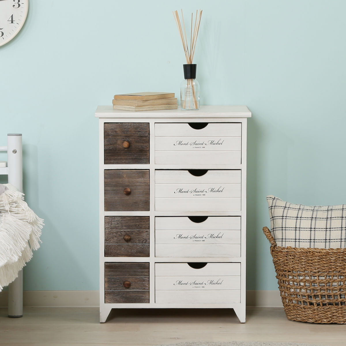 ■チェスト 幅52cm 2列4段 アンティーク調 ( 収納 棚 キャビネット タンス 桐 完成品 リビング収納 家具 引き出し 防カビ 防虫 ホワイトウ
