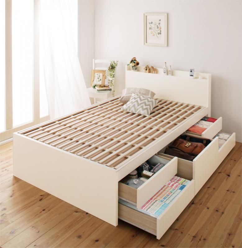 ■〔組立設置料込み〕日本製 棚・コンセント付き 大容量 すのこチェストベッド 〔Salvato〕サルバト 〔ベッドフレームのみ・マットレスなし