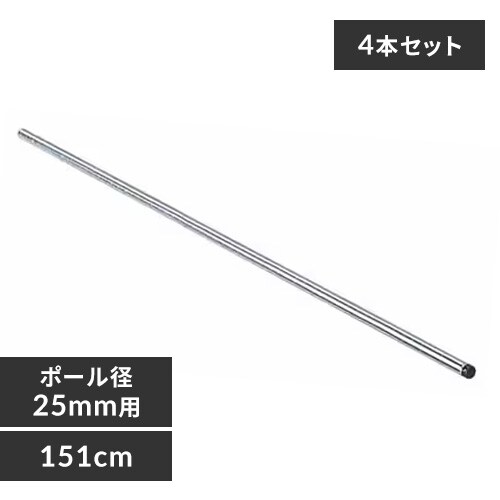 ポール直径25mmの「メタルラックシリーズ」専用のポールです。10cm単位のサイズバリエーションで、用途や収納場所に合わせてお好みのサイズが選べます。脚部分には、ぐらつきを防止するアジャスター付き!※10cm単位に該当しない商品が一部ございます。●商品サイズ(cm):直径約2.5×長さ約151●主要材質:スチロール(クロームメッキ)※こちらの商品は4本セットです。