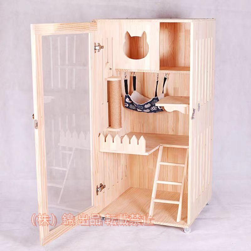 ■ペット用品 猫用キャビネット ネコトイレ 棚 リビング キャットトイレ 家具 木製キャットケージ ヴィラ 株式会社錦無垢材