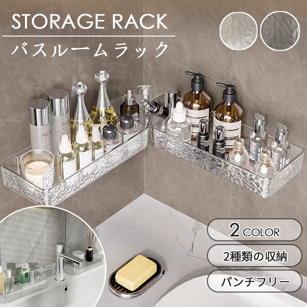 ■バスルームラック シャワーラック 強力粘着固定 コーナー収納 おもちゃラック お風呂 小物収納 穴開け不要 バスラック 棚 コーナーラック