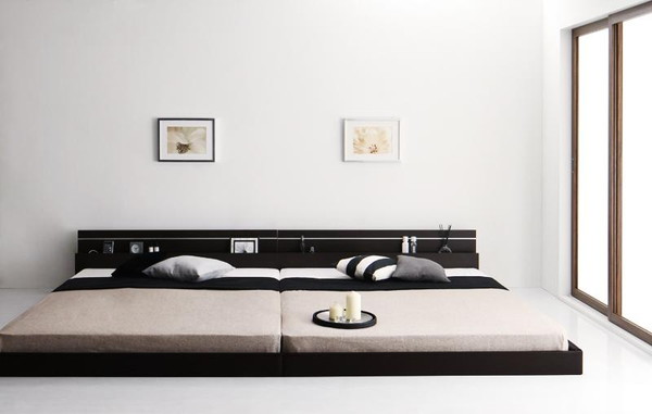 ■連結ベッド キング ワイド 2人 3人 4人 つなげる ファミリー ローベッド ロータイプ 低い 宮付き 枕元 棚 携帯 スマホ ティッシュ メガネ