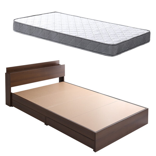 ■ホームテイスト STL-BRM-D-WALWH ウォールナット/ホワイト [棚・コンセント付きチェストベッド ボンネルコイルマットレスセット (ダブル