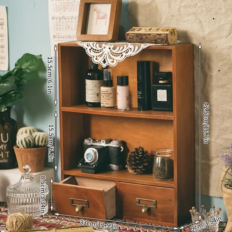 【業者様】 大量購入していただける業者様には、特別価格でご提供いたします! ■商品説明 心をつかむヴィンテージスタイルのディスプレイ棚 このおしゃれなディスプレイ棚は、あなたのインテリアを一段と引き立て、ヴィンテージ感あふれるデザインが魅力です。木製のキャビネットには引き出し収納が備わっており、実用性と美しさを兼ね備えています。お気に入りの雑貨や本を飾り、同時にデスク周りやリビングをすっきり整頓するための理想的なアイテムです。かわいらしいデザインは、どんなお部屋にもフィットし、特にナチュラルテイストや北欧インテリアに映えること間違いありません。 ■サイズ 2つのボックスと2つの引き出し 縦:42.5cm (1仕切り:15.5cm・引き出し:8.5cm) 横:33cm 奥行:9cm ※仕切りで9つに分けられたデザインもございます。 商品一覧ページをご覧くださいませ。 ■素材 木 ■カラー ナチュラルカラー