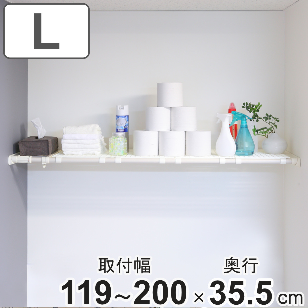 ■つっぱり棚 超強力伸縮ラック ワイド L 取り付け幅 119〜200cm 突っ張り棚 棚 ラック 奥行ワイド ( 突っぱり 突っぱり棚 メッシュ 収納