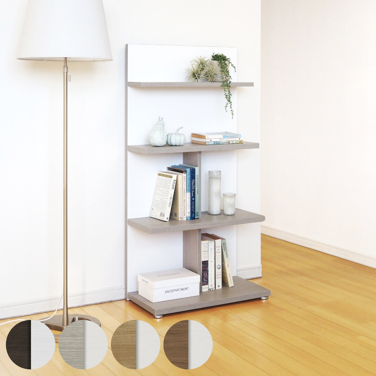 ■本棚 幅59cm 4段 木目調 日本製 フォースター リバーシブル 背面化粧 ( 棚 ラック 飾り棚 シェルフ 両面 四段 バイカラー 低ホルムアル