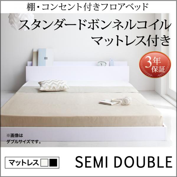 ■棚 コンセント付き ローベッド 黒が選べる マットレス付き セミダブル ホワイト
