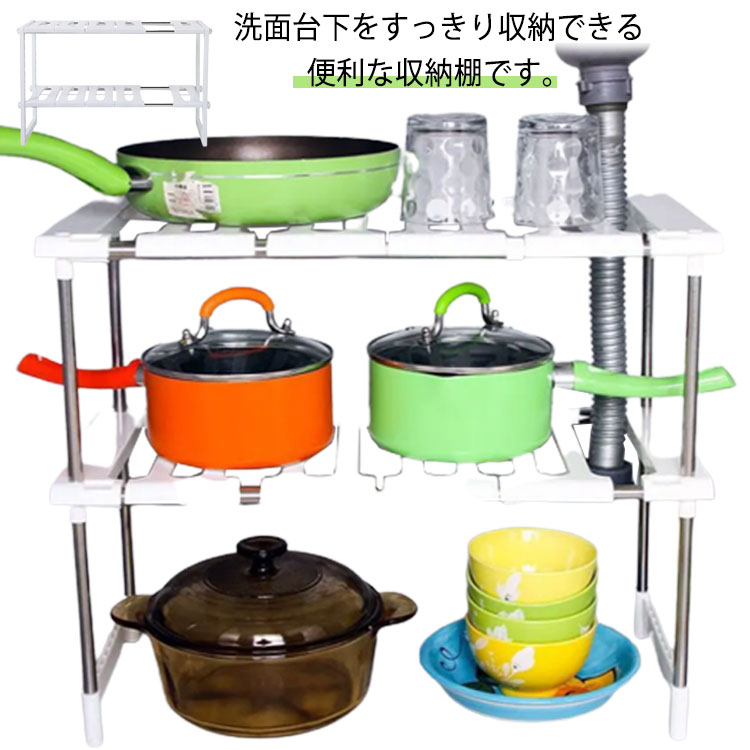 ■伸縮棚 シンク下 収納 キッチンラック 二段 シンク下 棚 収納 組立式 シンク下伸縮棚 流し台下 洗面台下 ラック キッチン収納棚 簡単組立