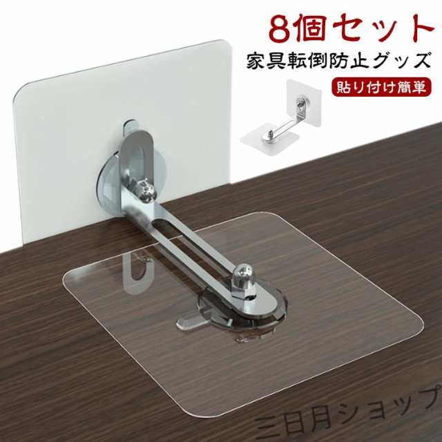 家具転倒防止グッズ 8個セット 耐震ストッパー 転倒防止 L字金具 粘着テープ 貼り付け簡単 家具 棚 地震対策 防災用品
