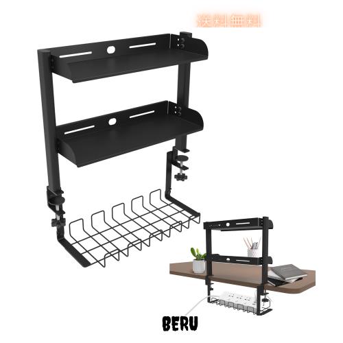 ■SAGVE(サゲビル) デスク上収納ラック 穴あけ不要 机上ラック ケーブルトレー付き クランプ固定 机上台 卓上棚 棚 可動棚 二段/三段 簡