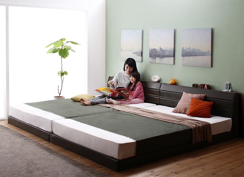 ■親子で寝られる 棚・コンセント付き レザー連結ベッド 〔Familiena〕ファミリーナ 〔国産ポケットコイルマットレス付き〕 ワイドK240(SD