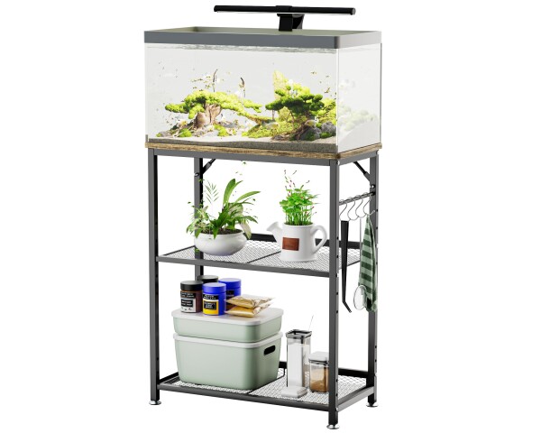 ■DEWEL 水槽台 60cm 中棚の高さ5段階調整可能 下棚の高さ3段階調整可能 水槽棚 水槽 台 ラック 棚 スタンド 水槽ラック 60cm水槽用 フック