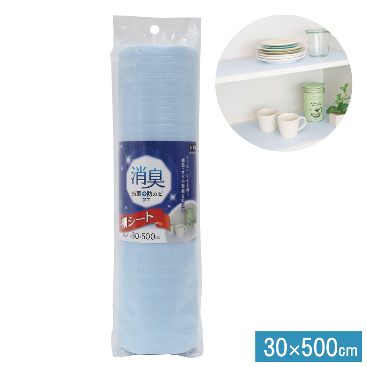 サイズ30×500cm材 質ポリエチレン商品説明●イヤなニオイを消し、雑菌・カビの繁殖を抑えます。●本品は、植物から抽出した天然成分フラボン誘導体を成分とした消臭剤(パンシル)と有機系抗菌剤を上面のフィルムに、防カビ剤を下面の発泡ポリエチレンに配合したものです。●シートまわりの不快な臭いを消し、シート表面の雑菌や裏面のカビの繁殖を抑えます。●不快臭(悪臭)だけを化学的作用により消臭します。●下からの湿気、汚れを防ぎます。●汚れは水拭きで簡単に落ちます。●サイズはハサミで自由にカットできます。●ソース、しょう油、油等をこぼしても、棚板面に流れ込むのを防ぎます。●ソフトなクッション性でグラスや食器を守ります。●ご使用のめやすは、約6ヵ月です。※市販の防虫剤・除湿剤と併用できます。