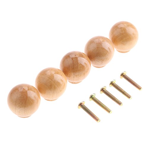 ■5個 セット木製 取っ手 つまみ 引き出しノブ ナチュラル ウッド 食器棚 たんす 家具 扉 金物 棚 ねじ付き 木色 28 × 29mm