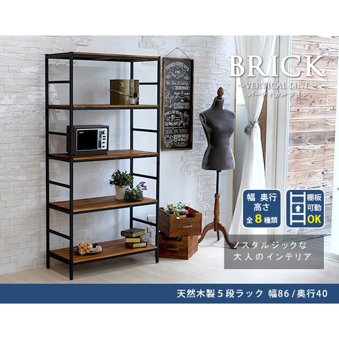■北海道・沖縄・離島配送不可 代引不可 天然木製ラック 5段タイプ 86×32×175 ブリックラックシリーズ ラック 棚 アイアン×パイン材 ミ