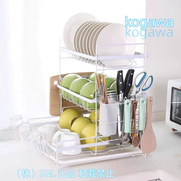 ■炭素鋼 水切りかご 2段 ホワイト スリム 棚 黒 白 三段 キッチン雑貨 キッチンラック ブラック 株式会社S&L箸立て コップ立て 北欧 横置