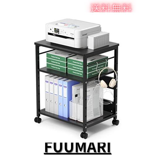 ■プリンタ台 プリンタラック サイドワゴン キャスター付き コピー機台 プリンター ワゴン 棚 3段 デスク下 収納 中棚 下棚 高さ調整可能