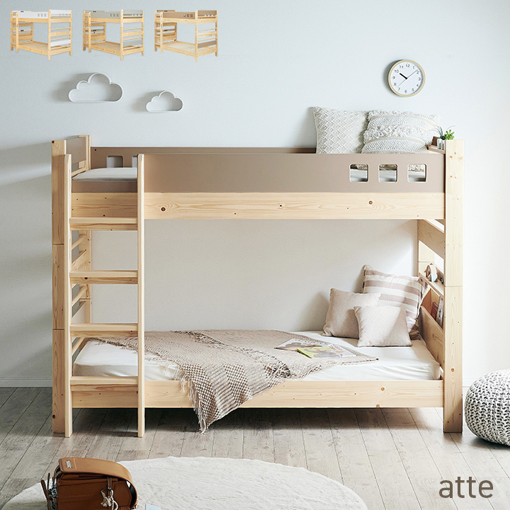 ■【有料組立設置可/詳細必読】【LEDライト・コンセント付き/分割使用OK】宮付き 二段ベッド 2段ベッド atte2(アッテ2) 3色対応 宮棚付き