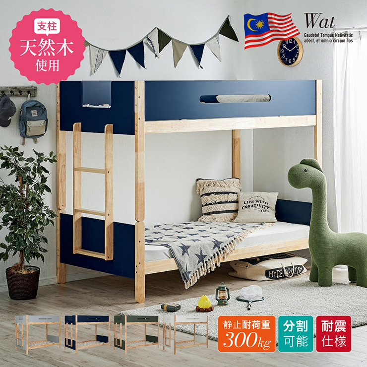 ■二段ベッド 木製 天然木 耐震仕様 Wat(ワット) 4色対応 分割可能 シングルベッド 2台 おしゃれ 収納付き スノコベッド コンパクト 北欧風