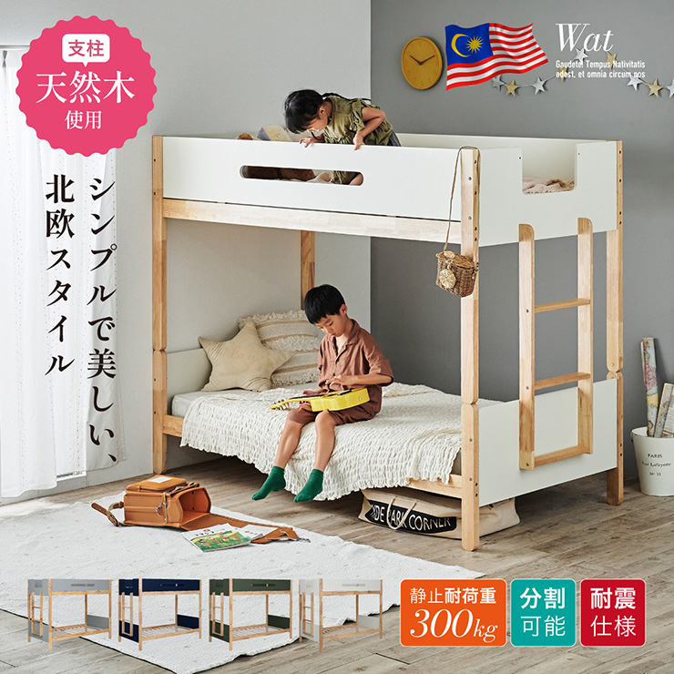 ■二段ベッド 木製 天然木 Orit(オリト) 4色対応 おしゃれ 耐震仕様 一体型 頑丈 収納付き すのこベッド コンパクト 北欧風 シンプル 安全