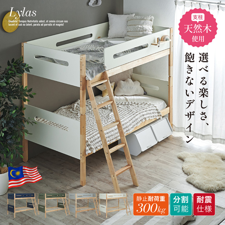 ■二段ベッド 大人用 子供用 分割可能 Lylas(ライラス) 4色対応 シングル 収納付き はしご付き 高さ調整 分離 コンパクト すのこベッド 安