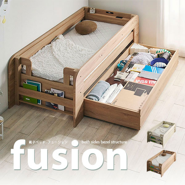 ■二段ベッド シングルサイズ スライド式 親子ベッド fusion(フュージョン) 2色対応 2段ベッド 単品 ロータイプ すのこベッド フレームのみ