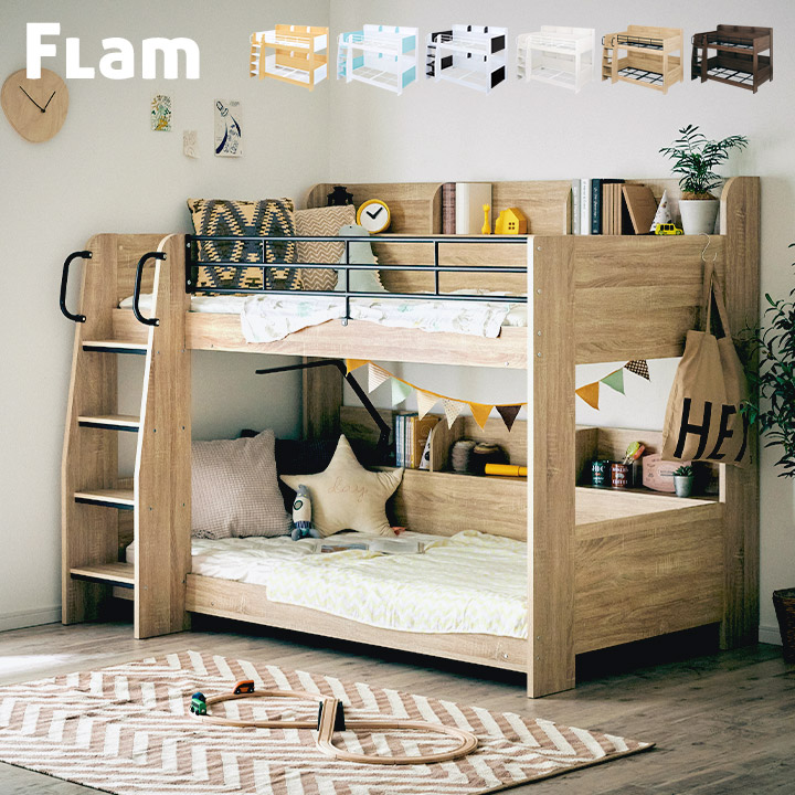 ■【ディスプレイを楽しめるサイド宮棚付】宮付き コンパクト 二段ベッド Flam(フラム) 6色対応 2段ベッド 二段ベット 2段ベット 宮付 棚