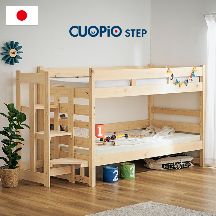 ■【5年保証/大川産/九州産ひのき使用】階段付き 二段ベッド 2段ベッド CUOPiO(クオピオ) 二段ベット 2段ベット 日本製 ハイタイプ 分離 分