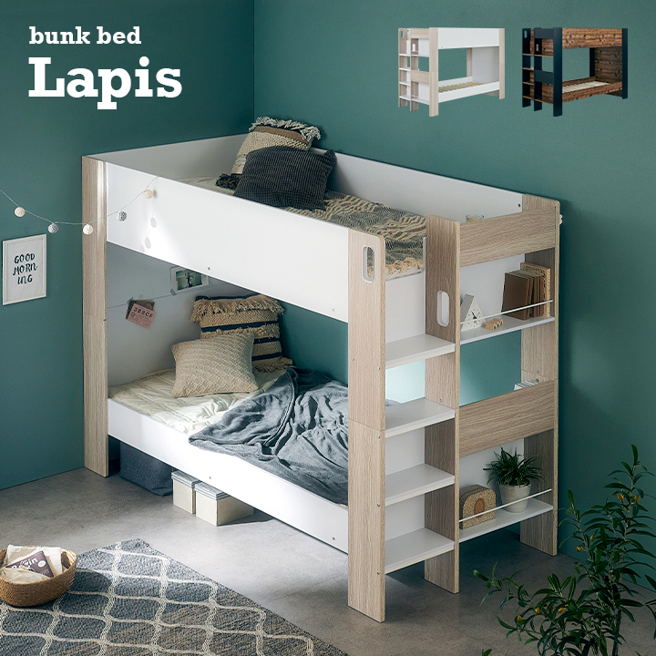 ■宮付き 2段ベッド 二段ベッド Lapis(ラピス) 2色対応 二段ベット 2段ベット Sサイズ 宮棚 収納棚 分割 分離 子供 子供用ベッド 大人用 コ