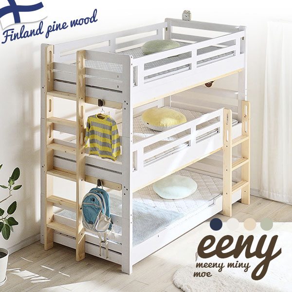 ■【特許申請構造】三段ベッド 3段ベッド 耐荷重500kg Eeny3 flat(イーニー3 フラット) 4色対応 三段ベット 3段ベット おしゃれ 大人用 子