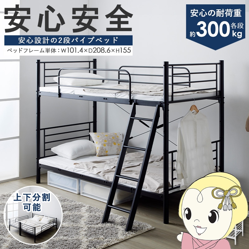 ■二段ベッド キングベッド パイプ 横連結 分離 2段ベッド 連結ベッド シングル 頑丈 はしご 高さ調整 ブラック