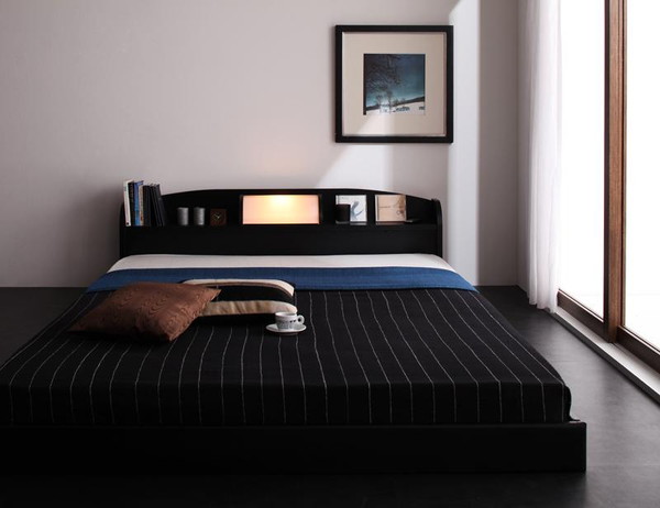 ■ベッド ダブル ローベッド ロータイプ 低い フロアベッド 低床 宮付き ヘッドボード 枕元 棚 携帯 スマホ ティッシュ メガネ リモコン ラ