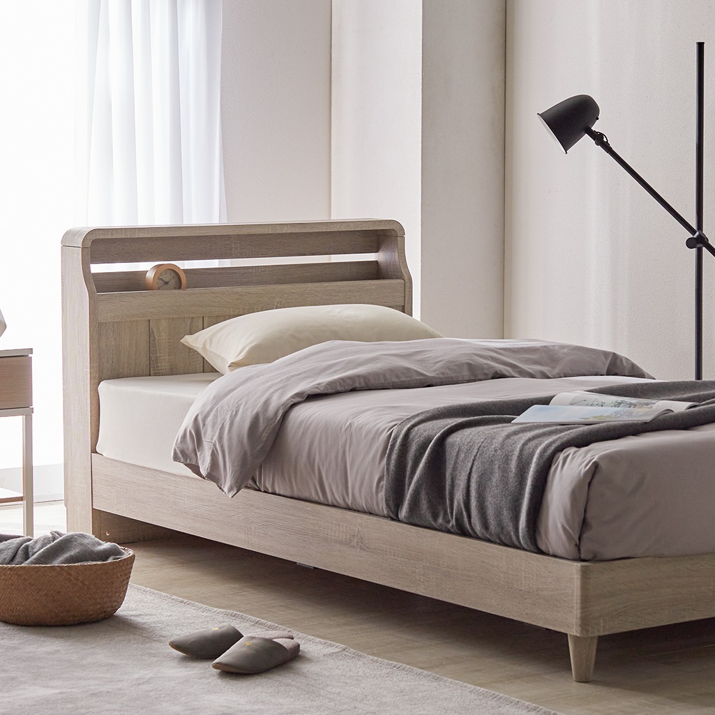 アンティーク感のある木目調シートで仕上げた、おしゃれなベッド羽目板風デザインのヘッドボードがお部屋に愛らしい存在感を与える、素敵な佇まいです宮棚にはスマホの充電に重宝するコンセントと、枕元のほんのり照らしてくれるLEDライトを備えました床面の高さは2段階に調整可能ロータイプでの使用でお部屋の圧迫感を軽減できます角に丸みを持たせたやさしいつくりも魅力カラーは2色、コンセント1口タイプの「シングル」「セミダブル」と、左右に1口ずつコンセントを備えた「ダブル」の3サイズ展開です
