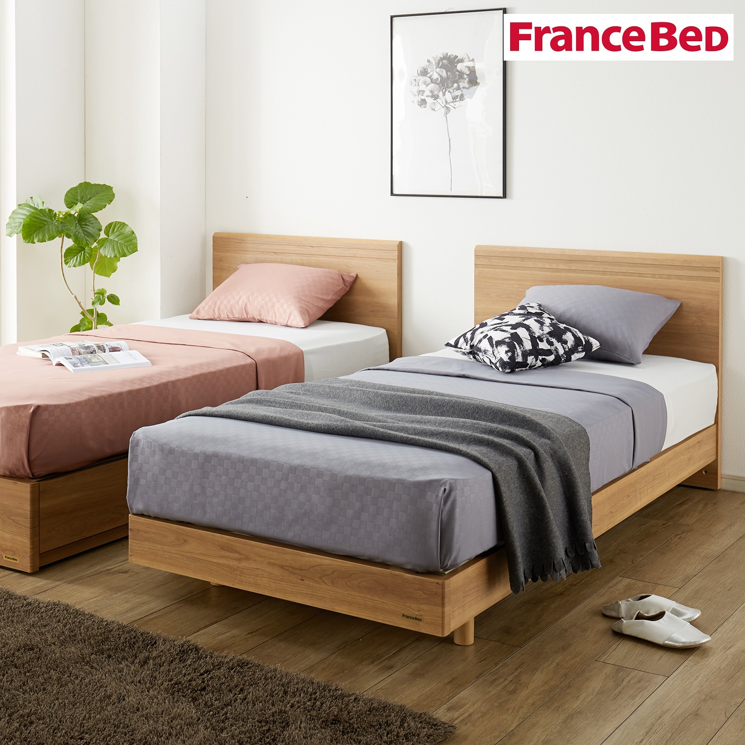 木目調のナチュラルなヘッドボードが、寝室に落ち着いた雰囲気にしてくれるシンプルベッド床板はすのこ仕様で通気性も抜群床板の高さは2段階に変えられますカジュアルに使えて明るい雰囲気の「ナチュラル」と、シックで大人っぽいムードを演出する「ダークブラウン」の2色をご用意それぞれ「シングル」「セミダブル」「ダブル」の3サイズから選べます信頼のブランド「フランスベッド」製の国産製品です同シリーズの引出し付きタイプ「シンプル引出し収納付きすのこベッド(商品番号:1159884)」もあります【France Bed】心地のいい時間を過ごせるよう、常に相手を深く思いやり、繊細な心づかいを示す。フランスベッドのもの作りの根底には、日本人が大切にし続けてきた「おもてなしの心」が息づいています。「日本に暮らす方へ最高の寝心地をお届けしたい」という思いから、高温多湿という日本の気候風土や、日本人と欧米人の骨格の違いを細やかに見つめ、日本人にとって最適なベッドを追い求め続けてきました。優れた寝心地のベッドを通じて、お一人おひとりの質の高い睡眠と健やかな日々を支えるために、フランスベッドはこれからも、「もてなしの国の、品質」をさらに磨き続けます。#ベッドフレーム