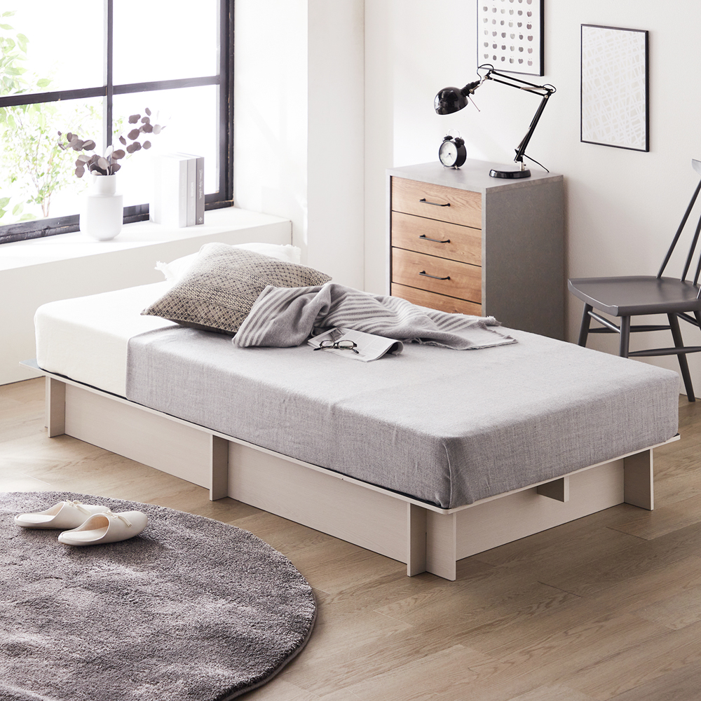 【女性ひとりでも組み立てが簡単】組み立ては2ステップで簡単脚をつけてひっくり返し、コの字金具で連結するだけ所要時間は約5分※本体が2つに分かれているので、女性でも移動がラク簡単に分解できるので、引越しなどの時も便利です脚部使用時ベッド下高さは17.5cmあり、収納スペースとしても使えます 脚を外して付属の傷防止フェルトを使用すればロースタイルでも使用可能 すのこ状で通気性がよく、湿気がこもりにくい 高さが低めなので、広さが限られた部屋にもすっきりと置けます シングル、ダブルの2サイズからお選びいただけます【ベルメゾンデイズ/BELLE MAISON DAYS】ベルメゾンデイズ は、「今日より明日、明後日が楽しくなる暮らしの提案」をコンセプトとした、ベルメゾンを一歩リードするオリジナルブランドです。どの商品を組み合わせても居心地の良い 美しい空間がつくれるように考えられています※開梱・部品チェック・説明書確認などの時間は含まれておりません。