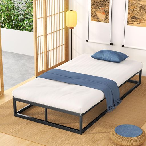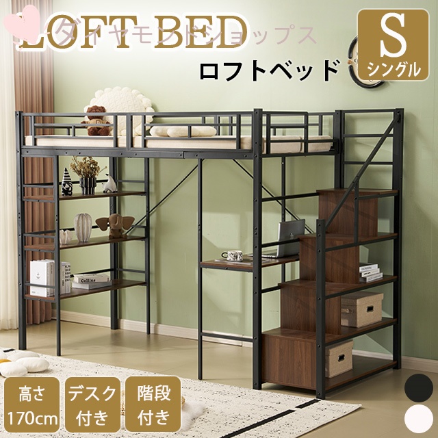 ■シングルベッド ベッドフレーム 白 ホワイト 高さ2段階調節 頑丈 スチール製