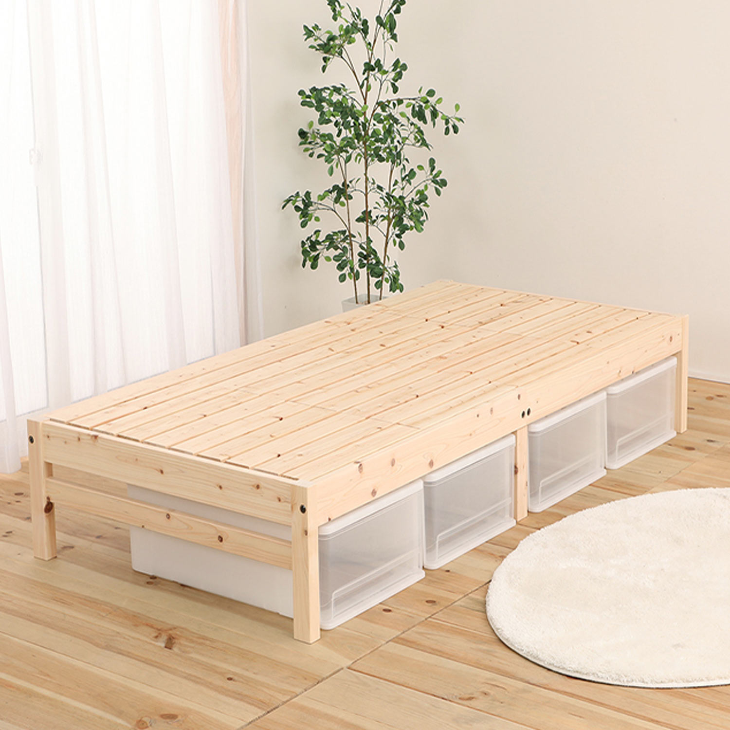 国産檜を贅沢に使用防虫効果のある心を落ち着かせる香りで快適な寝心地を楽しめます床板すのこ仕様で通気性がよく、湿気がこもりやすい季節も安心長く愛用できる6本脚の頑丈なつくりも特徴ですベッド下には収納ケースをしまえ、スペースの有効活用も◎#ベッドフレーム