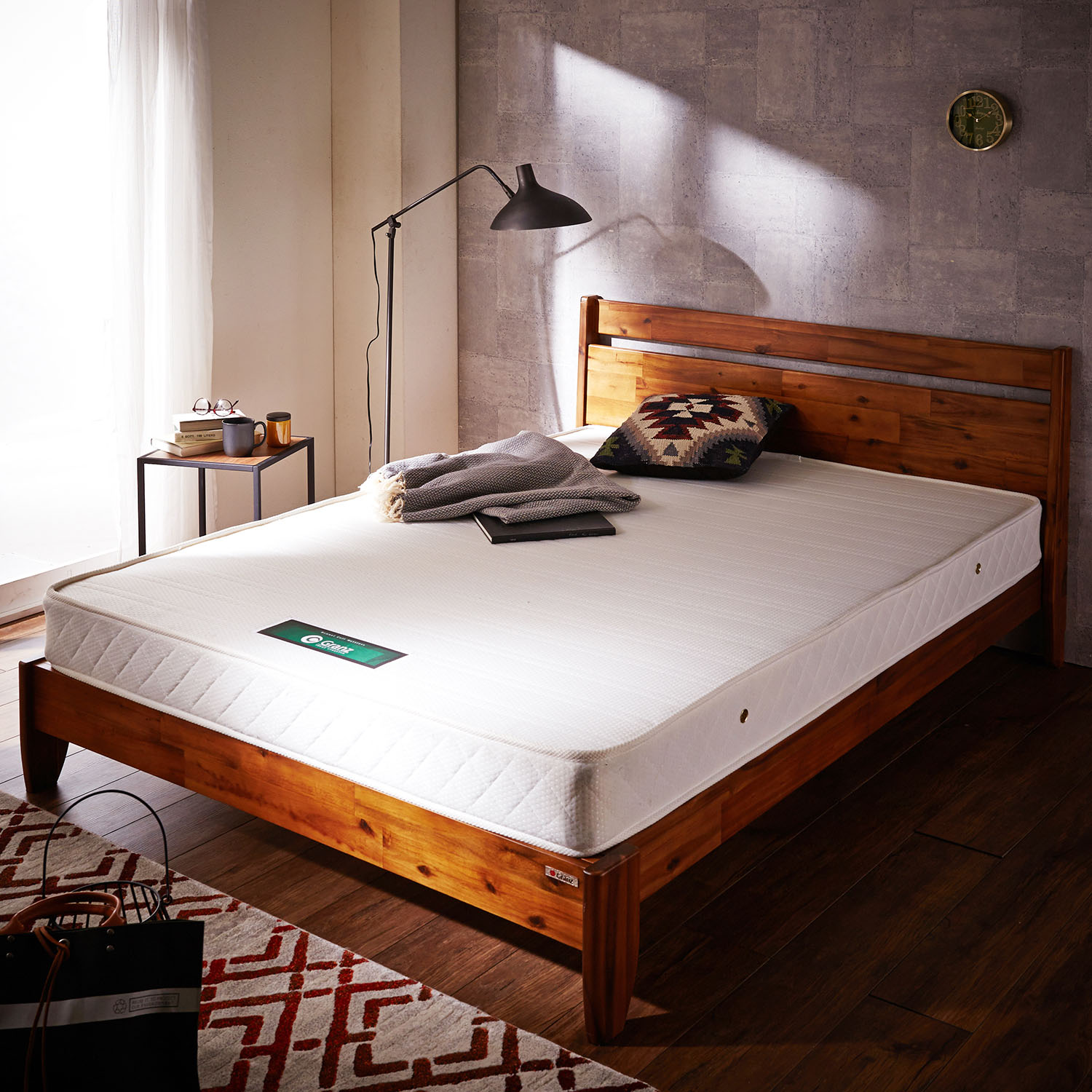 スマホが充電できるコンセントを備えたヘッドボードとすのこで仕上げた、シンプルデザインのベッドすのこの色味を同じにすることで高いデザイン性を叶えました北欧調のお部屋やナチュラルテイストのお部屋など幅広いインテリアに素敵な存在感を与えてくれますヘッドボードはスッキリ板状ながら宮とコンセントがついているので機能性もGOOD床面の高さは継ぎ脚で変えられるので、高さ調節が可能収納ケースなどを置きたい方にもおすすめです脚をすべて外してローベッドにするのもおすすめベッドのみの単体はシングル、セミダブル、ダブルの3サイズ。加えてシングルベッドにマットレスをお付けしたシングル(マットレス付き)の計4タイプをご用意タモ材を使用した「ナチュラル」と、ウォルナット材を使用した「ブラウン」の2色からどうぞ#ベッドフレーム>