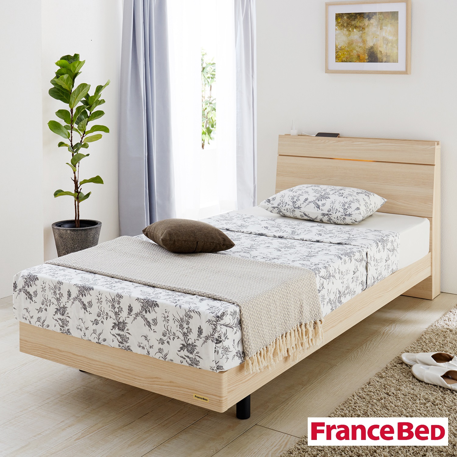 ■【フランスベッド】LED間接照明・コンセント付きシンプルモダンベッド