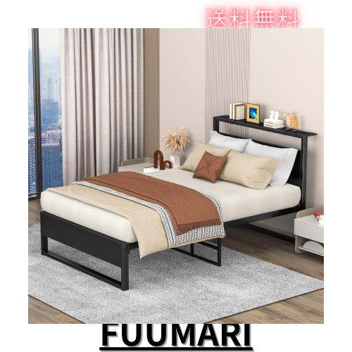 ■ベッドフレーム シングルベッド シンプル 床下スペース 宮棚 2口コンセント付き