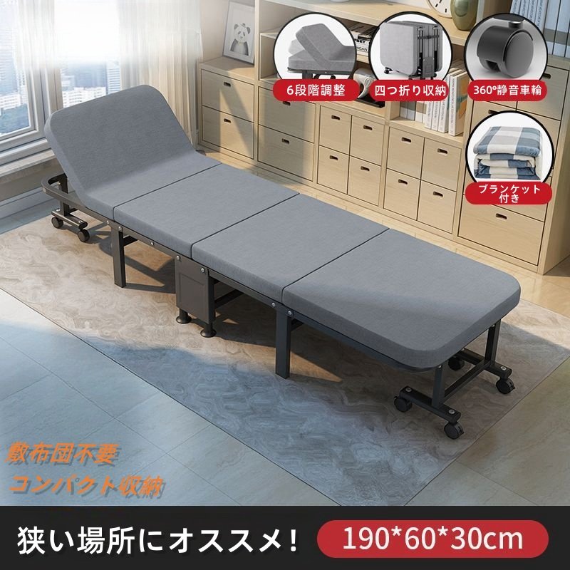 ■折りたたみベッド 6段階リクライニング シングルベッド 高反発ウレタン コンパクト 四つ折り 簡易ベッド ブランケット付き 仮眠用 防塵収