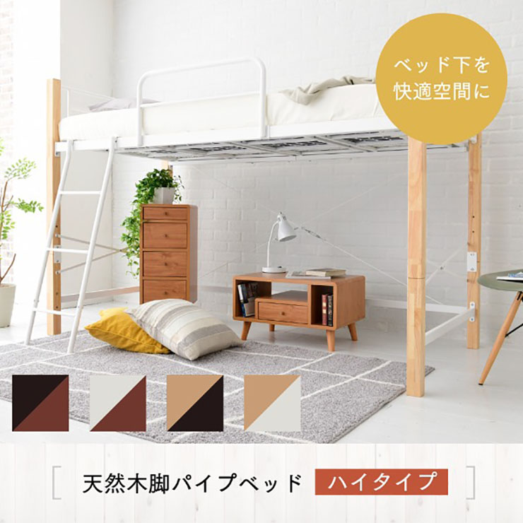 ■【ミドル/ハイ組み替え可能】天然木パイプベッド ハイタイプ IRI-1042SET 4色対応 シングルベッド シングルベット シングル ベッド ベッ