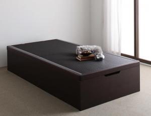 ■シングルベッド 茶色 ブラウン 茶 〔お客様組み立て〕 収納 ベッド ショート丈 跳ね上げ式 縦開き ミドルタイプ 深さ37cm 3ゾーンポケッ