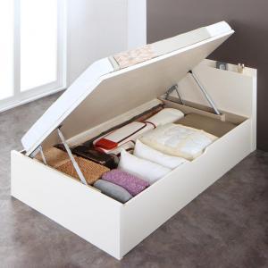 -商品名-シングルベッド 一人暮らし マットレス付き 跳ね上げ式ベッド ガス圧 ベッド下 収納付き 大容量 宮付き ヘッドボード 枕元 棚 ラック 携帯 ティッシュ メガネ リモコン 頭上 収納 コンセント ゲーム スマホ 充電 電気 白 デザイナーズ ホテル モダン 高級 メンズ ホワイト
