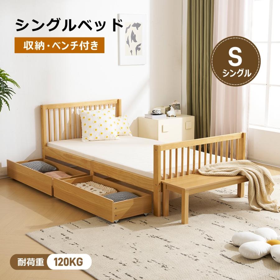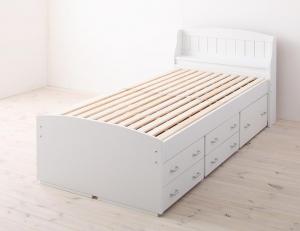 ■シングルベッド 白 ホワイト、ナチュラルから選べる カントリー調棚付きチェストベッド