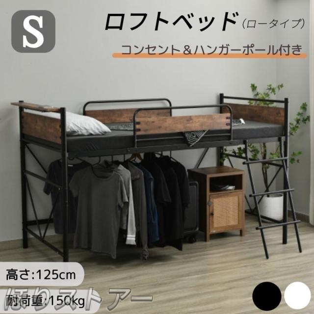 ■ほりロフトベッド ロータイプロフトベッド システムベッド パイプベッド ミドルタイプ ハンガーポール4本付属 耐震ベッド シングルベッド
