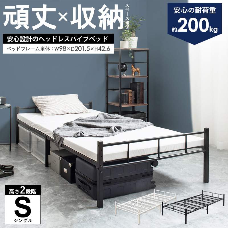 ■ベッド パイプベッド シングル シングルベッド アイアン 耐過重200キロ ブラック ホワイト 頑丈設計 ヘッドレスパイプベッド