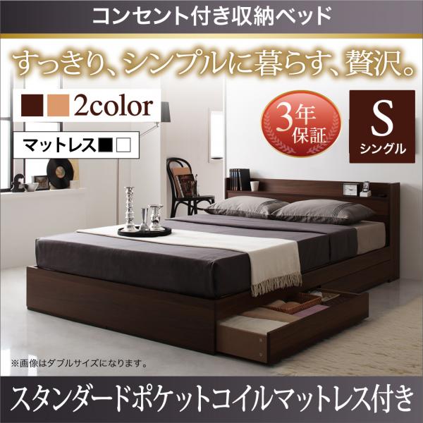 ◆北海道は別途送料がかかります(沖縄離島発送不可) コンセント付き収納ベッド(ポケットコイルマットレス付き)シングル ■ヘッドボードはコンセント付きのシンプルデザイン。 小物をたくさん置ける棚に、便利なコンセントが付いて機能性も重視。 ■2杯の引き出し収納でお部屋をすっきり。 ベッド下は2杯の引き出し付き。左右どちらでも付けられます。 ◆ふっかふかの寝心地ポケットコイルマットレス付き ▼サイズ▼ ◎シングル(ボンネルコイルマット付き) ◎セミダブル(ボンネルコイルマット付き) ◎ダブル(ボンネルコイルマット付き) ◎シングル(ポケットコイルマット付き) ◎セミダブル(ポケットコイルマット付き) ◎ダブル(ポケットコイルマット付き)