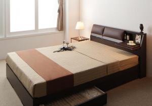■シングルベッド 茶色 ダークブラウン 茶 こげ茶 クッション・フラップテーブル付き収納ベッド 国産 日本製 国産ポケットコイルマットレス