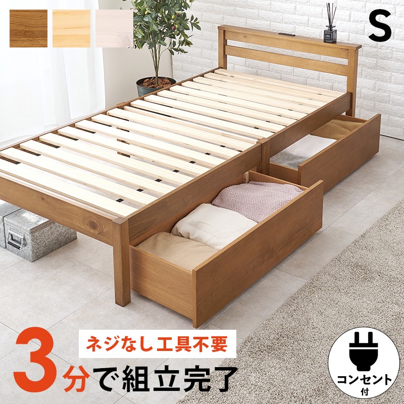 ■すのこベッド シングル 宮付き ベッド宮セット ベッドフレーム シングルベッド ロータイプ コンセント付き 木製 天然木 パイン材 ナチュ